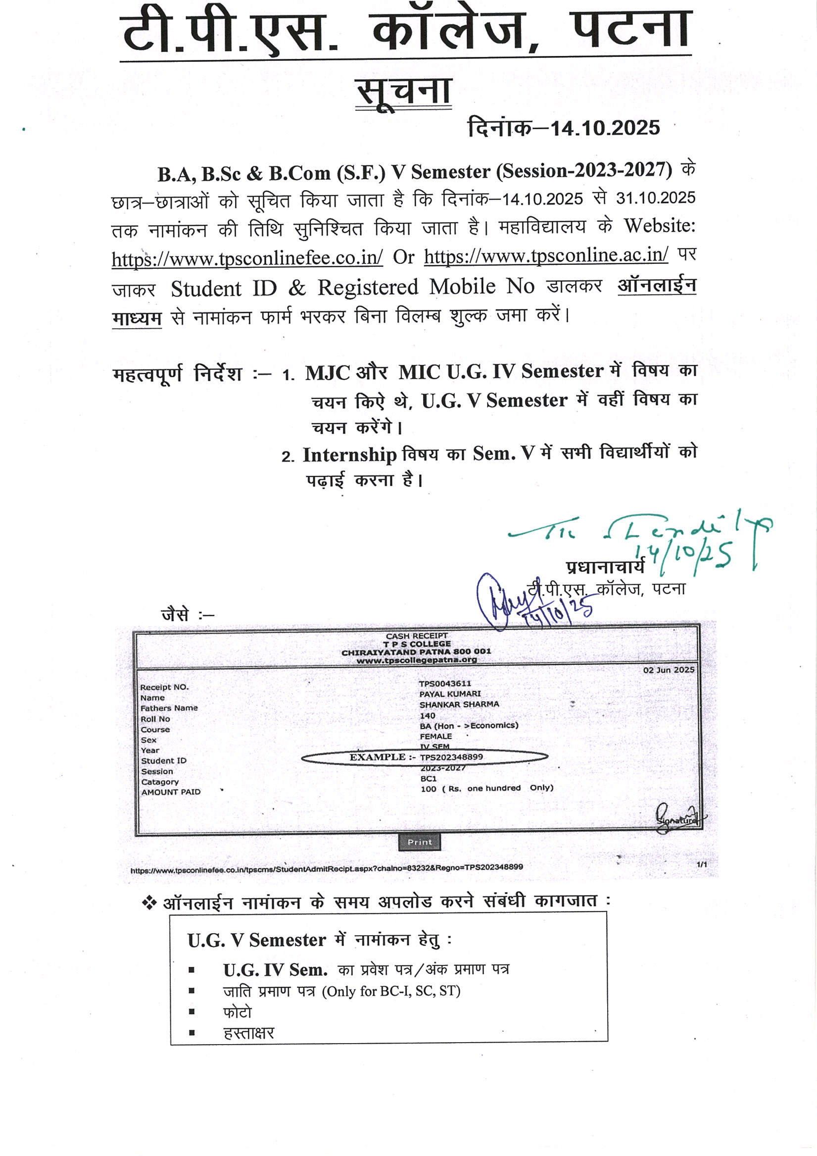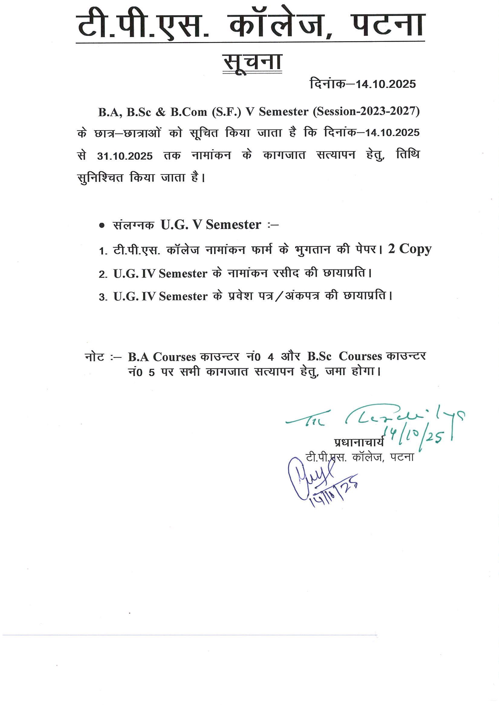 To submit document for admission in B.A, B.Sc & B.Com (S.F.) Sem. V (2023-27)