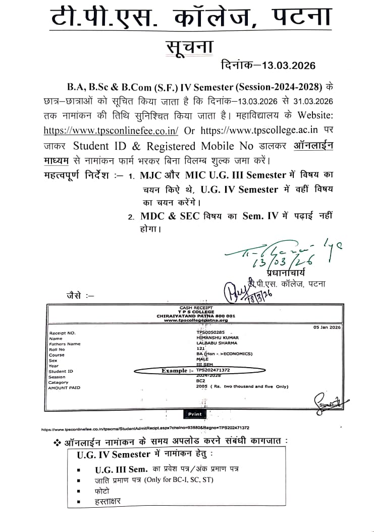 CLICK HERE FOR B.A & B.Sc SEM. IV ADMISSION SESSION 2024-2028